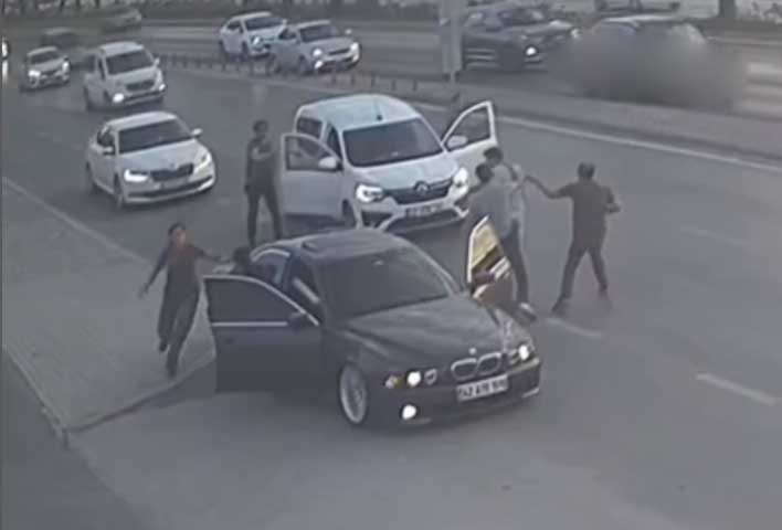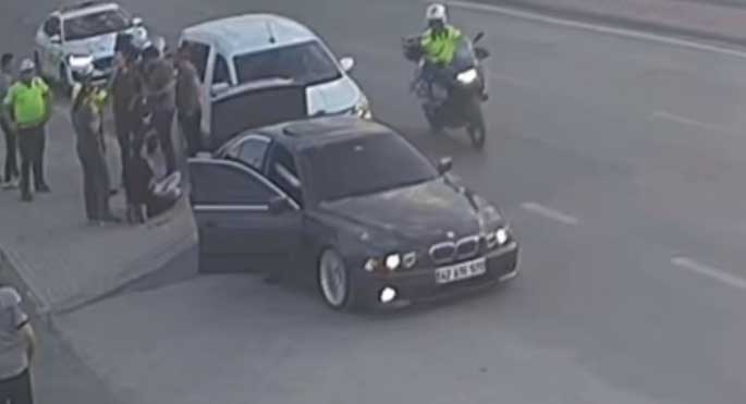 Yoğun trafik nedeniyle kaldırıma çıkan sürücü, ekip aracından inen polisin ikazına da aldırış etmeden yoluna devam etti. Polis memuru, aracı durdurmak amacıyla sol arka lastiğe ateş açtı. Kurşunun isabet ettiği lastikle ilerleyemeyen araç, kısa sürede durduruldu.