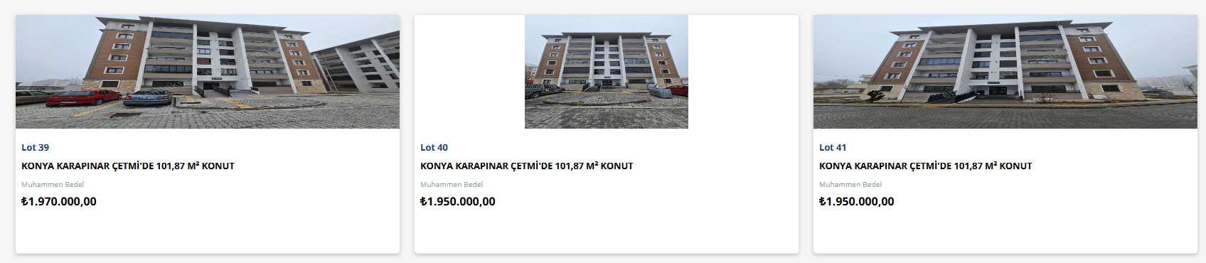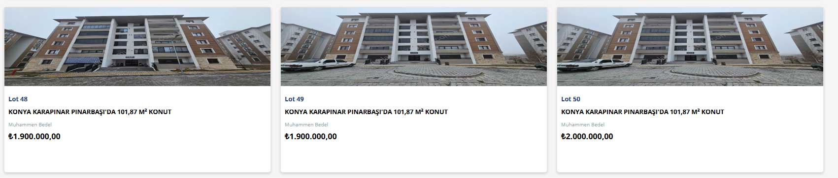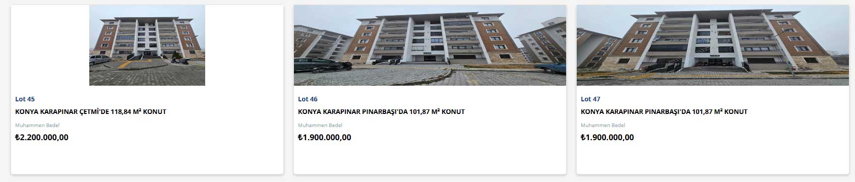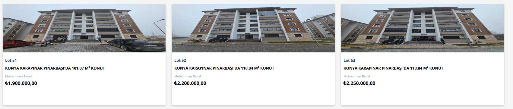 Satışa sunulan daireler, Karapınar ilçesinin Çetmi ve Pınarbaşı mahallelerinde yer alıyor.