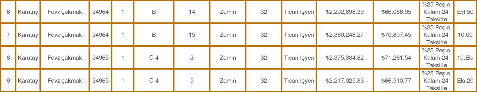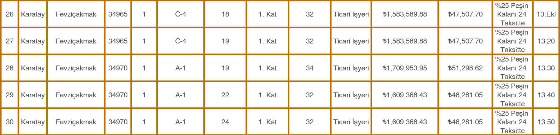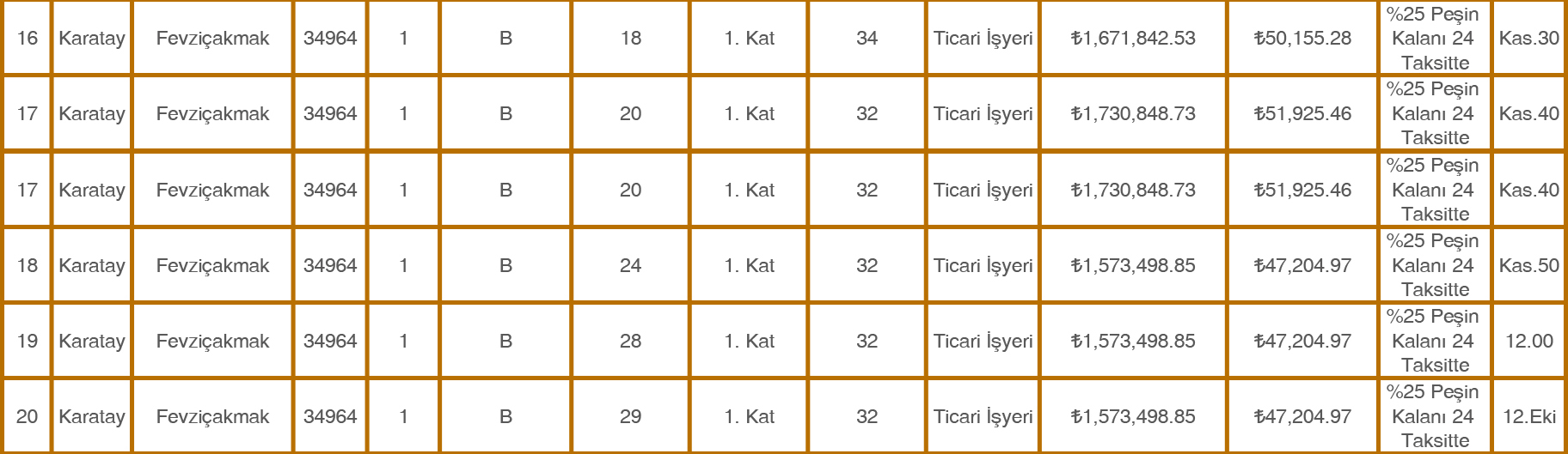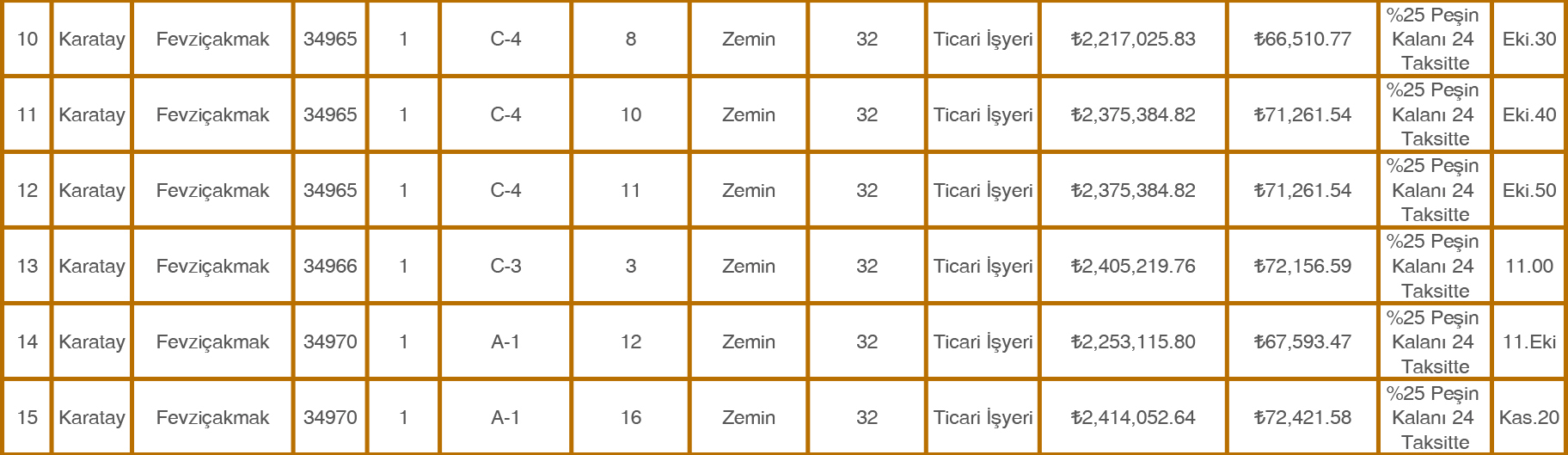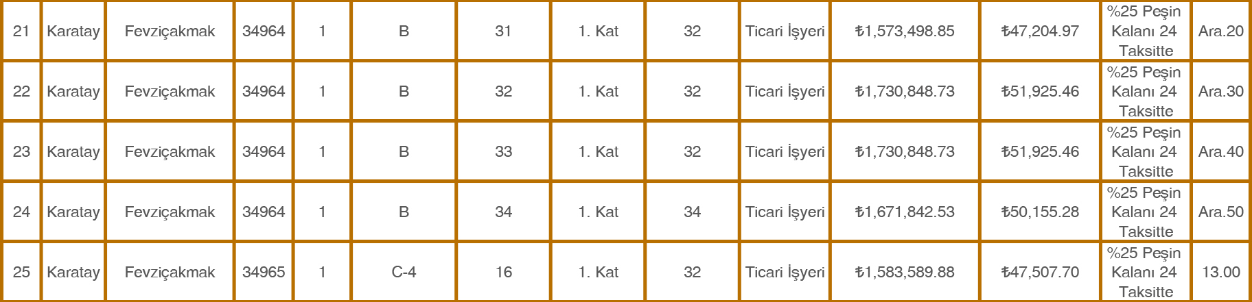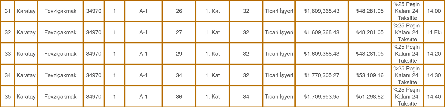İşyerlerinin fiyatları 1 milyon 573 bin liradan başlayıp, 2 milyon 375 bin liraya kadar çıkıyor.