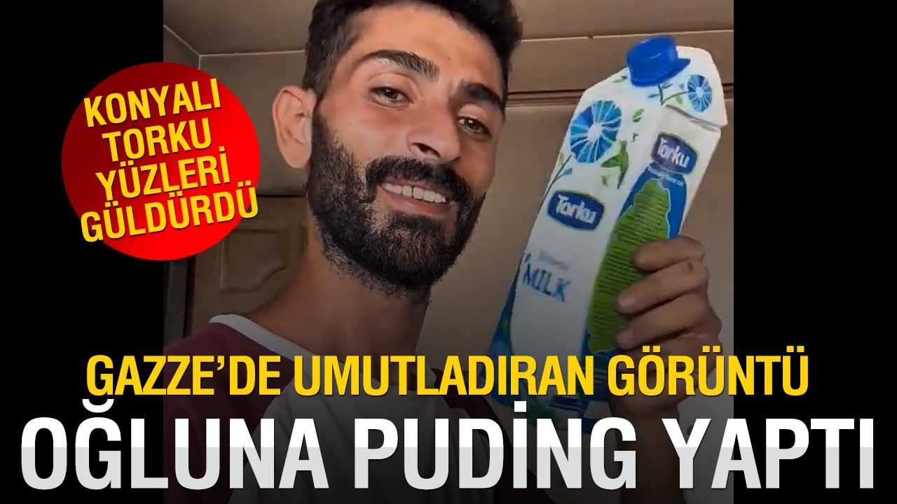 Gazze’de yaşayan bir baba, eline geçen kısıtlı malzemelerle oğluna küçük bir mutluluk yaşatmak istedi. Türkiye’den gelen yardım paketlerinden çıkan ürünlerle puding yapan baba, zorlu şartlar altında bile çocuğuna sevinç dolu bir an yaşattı.